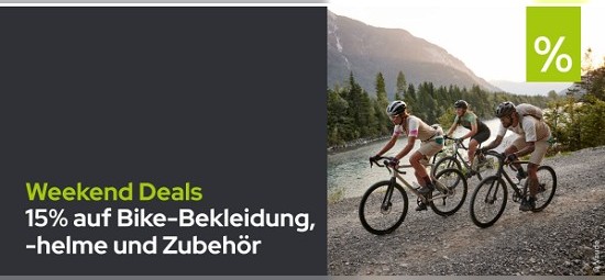 Ob Bikeshorts, Shirt, Handschuhe oder einfach einen Begleiter für eure nächste Tour ins Grüne, im "Bike-Sale" von sport-schuster.de könnt Ihr Euch mit allerhand Bekleidung und Equipment rund um euren Lieblingssport eindecken. Und wenn ihr da nicht schon Top-Deals bekommt, gibt es mit dem Code: "Bike15" noch einmal 15% on Top.