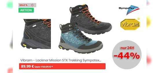 Und auch am heutigen Mittwoch ist er wieder on, der 24h-Sale bei hive-outdoor.com. Sparen lässt sich dieses Mal z.B. bei der "Dare2b - Wasserdichte Ared 20 000 Stretch Outdoor- Funktionsjacke ", den ihr für nur noch 44,99€ (- 72%) bekommt, perfekt für den nächsten Bergtrip seid ihr mit den "Vibram - Lackner Mission STX Trekking Sympatex Leder Wanderschuhe" ausgestattet, die es für 89,99€ (UVP 150,05€ / - 44%) gibt und bequem unterwegs seid ihr in dem "DAKINE - Explorer Pack 28L Rucksack Original Freizeit-Rucksack. Diesen gibt es hier für nur noch 19,99€ statt 69,95€. Reinschauen lohnt sich bestimmt.