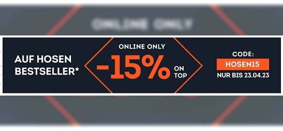 Ob zum Laufen, Wandern, Klettern oder den sportlichen Alltag - bei dieser Aktion von sportscheck.com werden in puncto Hosen zahlreiche Kategorien bedient. Und das Beste: Auf alle Hosen bekommt ihr mit Eingabe des Codes "HOSEN15" einen Rabatt von 15% on Top. Dieser kann im Warenkorb noch bis einschließlich Sonntag, den 23.04.2023 eingelöst werden.