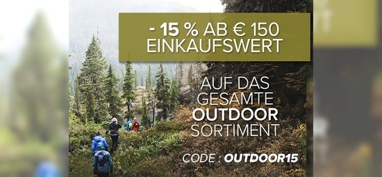 Darf es ein neues Zelt, Flasche oder einfach eine neue Jacke sein? Dann nichts wie hin zu snowleader.de. Der shop überrascht euch mit einem Extra-Rabatt von 15% ab einem Einkaufswert von 150€ auf das ganze Outdoor Sortiment. Einfach den Code: "OUTDOOR15" in den Warenkorb eingeben, und schon reduziert sich der Preise.
