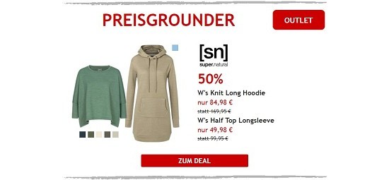 Und auch heute ist es wieder soweit, der 24h bei hive-outdoor.com ist on. Sparen könnt ihr dieses Mal z.B. bei der "Royal Robbins - Geneva Ponte - Damen Sportjacke" die ihr für nur noch 14,99€ (- 85%) bekommt, den warmhaltenden "Royal Robbins - Damen Merino Schal" gibt es für 9,99€ (UVP 59,95€ / - 83%) und keine kalten Füße bekommt ihr mehr mit den "Craghoppers - Merinowolle Socken" für 6,99€ (-65%). Schaut doch mal rein.