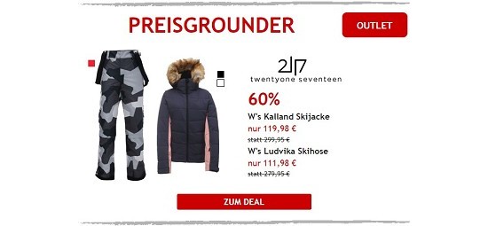 50% günstiger, nämlich für 129,00 € statt der UVP von 259,95€, wird beispielsweise die "Herren Garvaism. Urban Shell Jacke" angeboten, die durch Eigenschaften wie wasserdicht, winddicht und atmungsaktiv überzeugt. Ihr seid interessiert? Dann klickt einfach auf "zum Deal!"