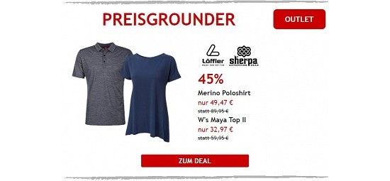 Noch auf der Suche nach Sommerschnäppchen? Bei bergfreunde.de könnt ihr gemütlich durch tausende, bis zu 60% reduzierte Outdoorartikel von Top Marken von A wie Alpina bis Z wie Zimtstern stöbern. Neben Bekleidung stehen natürlich auch Ausrüstung und Schuhe zur Verfügung - es sollte also für jeden Geschmack und Anspruch etwas dabei sein.