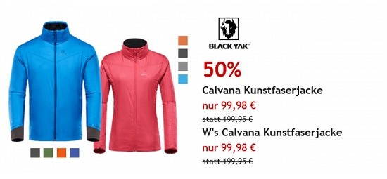 Blau, orange, rot, schwarz oder grau - der heutige "Bergfreunde Preisgrounder" kommt farbenfroh und warm daher. Die "Black Yak Calvana"-Kunstfaserjacke kauft Ihr in einer Damen- und einer Herrenversion für nur 99,98 € statt 199,95 € ein - und damit 50 % günstiger als bisher. Bei allen angebotenen Farbvarianten ist die Größenauswahl noch gut, so dass bestimmt auch Euer Favorit darunter ist.