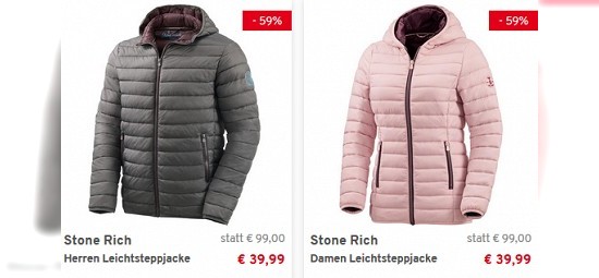 Stone Rich Leichtsteppjacke für Damen und Herren 59% reduziert bei vorteilshop