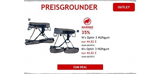 Klettern ist Eure Leidenschaft? Dann werdet Ihr im Kletteroutlet von bergfreunde.de bestimmt den ein oder anderen Kletterartikel finden - noch dazu, wenn die Rabatte auf Klettergurte, Kletterseile, Gurte & Co. bis zu 65% betragen. Den "Solaris"-Klettergurt von Edelrid für Damen bekommt Ihr beispielsweise für nur 71,97€ (UVP 119,95€ / Größen S, M) - und damit 40% günstiger als bisher. Der Gurt, der in puncto Nutzerbewertungen sehr gut abschneidet, kommt mit einigen Einstellmöglichkeiten und einem hohen Tragekomfort daher. Neugierig geworden? Dann klickt doch gleich mal rein.