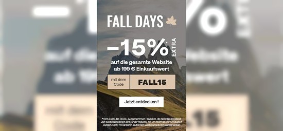Wanderlust bei sportscheck.com! Auf rund 1.000 Wander-Topseller erhaltet Ihr im Onlineshop einen Extra-Rabatt von 20% - hierfür müsst Ihr lediglich im Warenkorb den Gutscheincode "WANDERN24" eingeben und der Rabatt wird abgezogen. Dieser gilt im Übrigen auch für bereits reduzierte Artikel, so dass Ihr teilweise doppelt spart. Angeboten werden unter anderem Zipphosen, Funktionsshorts oder stylische Shirts.