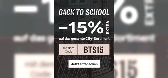 Euer Urlaub ist vorbei und euch fehlen noch ein paar coole Schuhe oder eine Tasche für den Neustart an der Schule oder Uni? Dann klickt doch mal bei snowleader.de vorbei. Hier dort gibt es noch bis Donnerstag, den 25.08.2024, einen Rabatt von 16% (Gutscheincode "BTS15" ) auf das ganze City Sortiment.