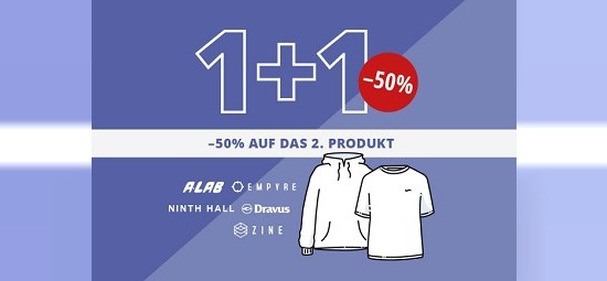 Einen Streetwear-Sale, bei dem ihr 50% sparen könnt, hat blue-tomato.com aktuell am Start. Wer zwei Artikel der Hersteller A.Lab, Empyre, Ninth Hill, Dravus & Zine kauft, bekommt das günstigere Teil mit einem Rabatt von 50%. Ein Gutscheincode ist hier nicht erforderlich, der Preis wird im Warenkorb direkt angepasst.