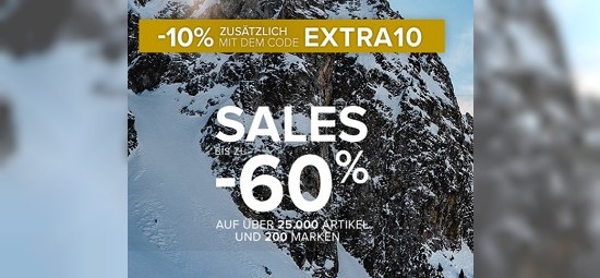 Ordentlich sparen könnt ihr dem "Sale" von bergzeit.de. Auf ca. 17.400 Artikel wie beispielsweise Jacken, Westen und Rucksäcke spart ihr hier bis zu unschlagbaren 76%. Euch reicht das noch nicht? Noch bis Montag, 19.02.2024 gibt es ab einem Mindestbestellwert von 100€ mit dem Code "10onTop" nochmal 10% extra.