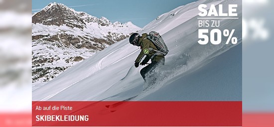 Winterfest? Wer in der laufenden Saison die Piste erobern möchte und noch das ein oder andere Teil dafür benötigt, könnte im "Skibekleidung-Sale" von bergfreunde.de fündig werden. Der Sale beinhaltet vor allem Ski- bzw. Winterbekleidung, außerdem werden einige Brillen mit Rabatten von bis zu 75 % angeboten.