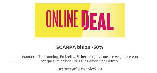 Wer wird bei Scarpa auch immer schwach? 8 Paar unverwechselbare Schuhe des italienischen Labels  - gibt es bei sportler.com gerade mit Rabatten von bis zu 50%. Neben dem Kultschuh von Scarpa kauft Ihr Trekking- und Wanderschuhe zu günstigen Konditionen ein.
